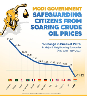 नई दिल्ली, 20 दिसंबर (आईएएनएस)। केंद्र सरकार द्वारा बुधवार को जारी आंकड़ों के अनुसार, नवंबर 2021 और नवंबर 2023 के बीच भारत में पेट्रोल और डीजल की कीमतों में कमी आई है, लेकिन पड़ोसी और पश्चिमी देशों में बढ़ गई है।