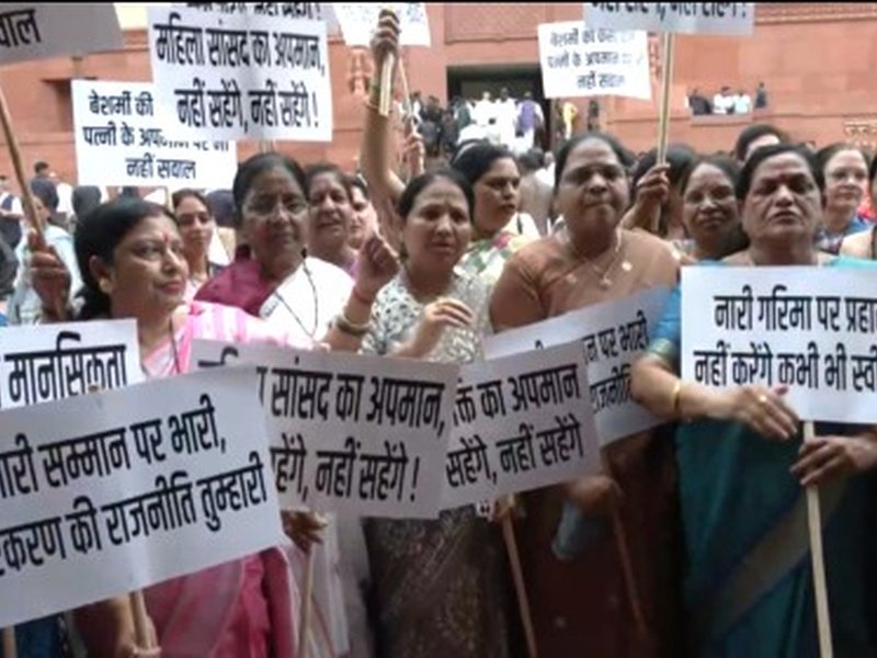 नई दिल्ली, 28 जुलाई (आईएएनएस)। समाजवादी पार्टी की सांसद डिंपल यादव के खिलाफ एक टीवी शो के दौरान आपत्तिजनक टिप्पणी करने के आरोप में मौलाना साजिद रशीदी के खिलाफ एनडीए की महिला सांसदों ने मकर द्वार पर प्रदर्शन किया। भाजपा महिला सांसद माया नारोलिया ने कहा, "यह समस्त नारी शक्ति का अपमान है। हम इस अपमान के खिलाफ एकजुट हैं।"