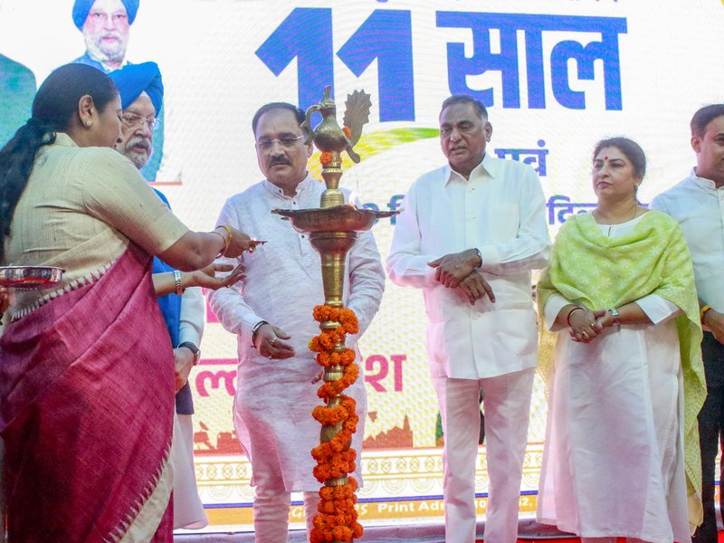 नई दिल्ली, 16 जून (आईएएनएस)। प्रधानमंत्री नरेंद्र मोदी के 'सेवा, सुशासन एवं गरीब कल्याण' के 11 साल और दिल्ली सरकार के 100 दिन पूरे होने पर दिल्ली भाजपा कार्यालय में प्रदर्शनी लगाई गई, जिसका उद्घाटन केंद्रीय मंत्री हरदीप सिंह पुरी, दिल्ली भाजपा अध्यक्ष वीरेंद्र सचदेवा और दिल्ली की मुख्यमंत्री रेखा गुप्ता ने किया।
