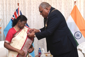 नई दिल्ली, 6 अगस्त (आईएएनएस)। राष्ट्रपति द्रौपदी मुर्मू को फिजी का सर्वोच्च नागरिक पुरस्कार 'कंपेनियन ऑफ द ऑर्डर ऑफ फिजी' से सम्मानित किया गया है। फिजी के राष्ट्रपति रातू विलियामे मैवलीली कटोनिवेरे ने उन्हें पुरस्कार सौंपा। उत्तर प्रदेश के मुख्यमंत्री योगी आदित्यनाथ और उत्तराखंड के सीएम पुष्कर सिंह धामी ने खुशी जाहिर करते हुए इसे गर्व का क्षण बताया।