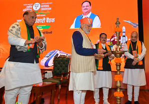 नई दिल्ली, 17 फरवरी (आईएएनएस)। दिल्ली में भारत मंडपम में भारतीय जनता पार्टी का दो दिवसीय अधिवेशन हो रहा है। इस अधिवेशन में प्रधानमंत्री नरेंद्र मोदी, केंद्रीय गृह मंत्री अमित शाह, भाजपा अध्यक्ष जेपी नड्डा शामिल हुए। भाजपा के राष्ट्रीय अधिवेशन ''मोदी है तो मुमकिन' और जय श्री राम के नारों से गूंज उठा, जिसका वीडियो पार्टी ने अपने आधिकारिक अकाउंट एक्स पर शेयर किया।