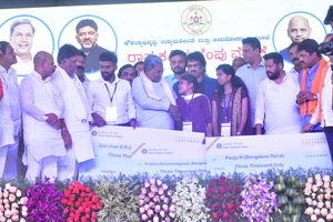 शिवमोग्गा, (कर्नाटक) 12 जनवरी (आईएएनएस)। कर्नाटक के मुख्यमंत्री सिद्दारमैया ने स्वामी विवेकानंद की जयंती के अवसर पर शुक्रवार को शिवमोग्गा में कांग्रेस सरकार की पांचवीं गारंटी योजना 'युवा निधि' का शुभारंभ किया।