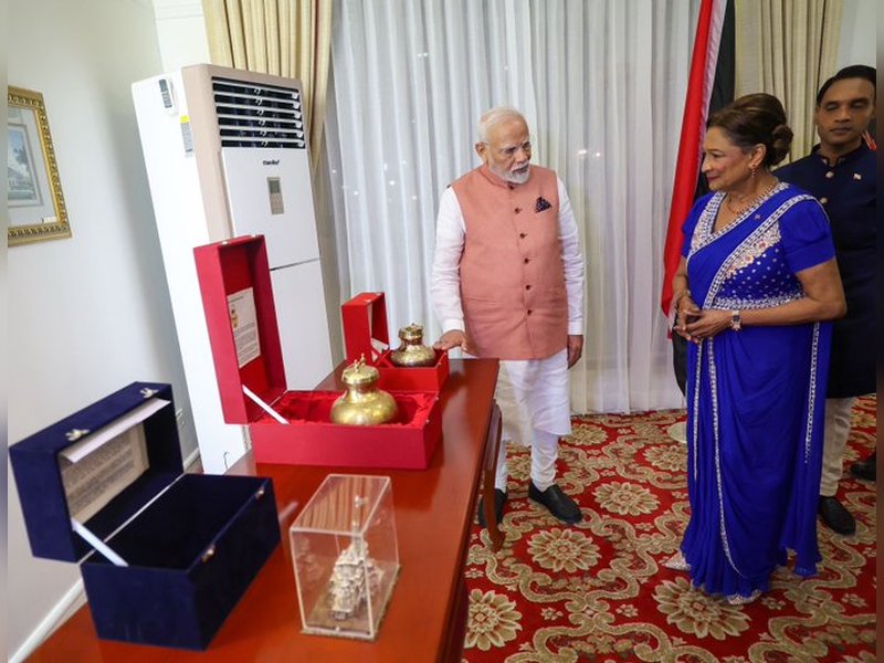 पोर्ट ऑफ स्पेन, 4 जुलाई (आईएएनएस)। प्रधानमंत्री नरेंद्र मोदी ने त्रिनिदाद एंड टोबैगो की प्रधानमंत्री कमला पर्साद-बिसेसर द्वारा आयोजित रात्रिभोज के दौरान अयोध्या के राम मंदिर की प्रतिकृति, सरयू और प्रयागराज के महाकुंभ का पवित्र जल भेंट किया। इस अवसर पर उन्होंने भारत और कैरिबियाई राष्ट्र के बीच गहरे सांस्कृतिक और आध्यात्मिक रिश्तों को उजागर किया।